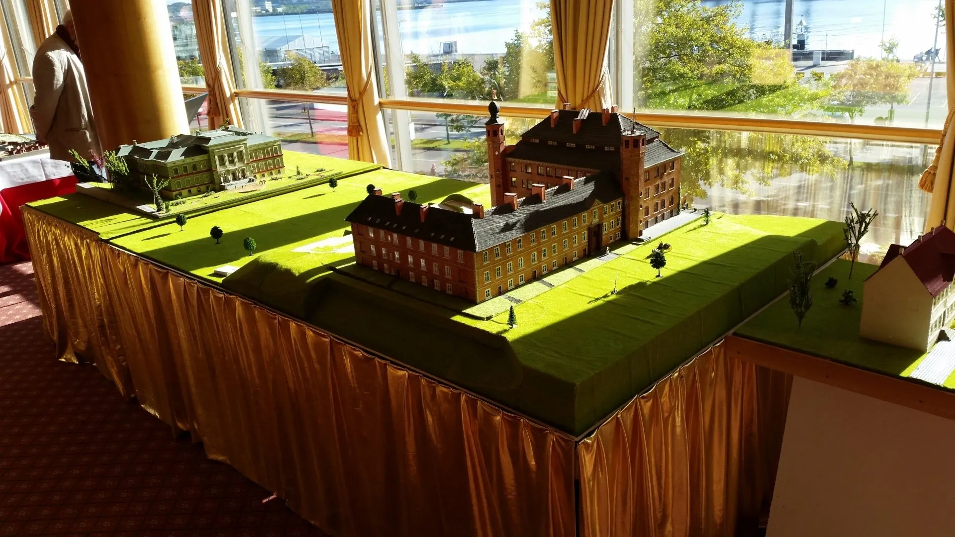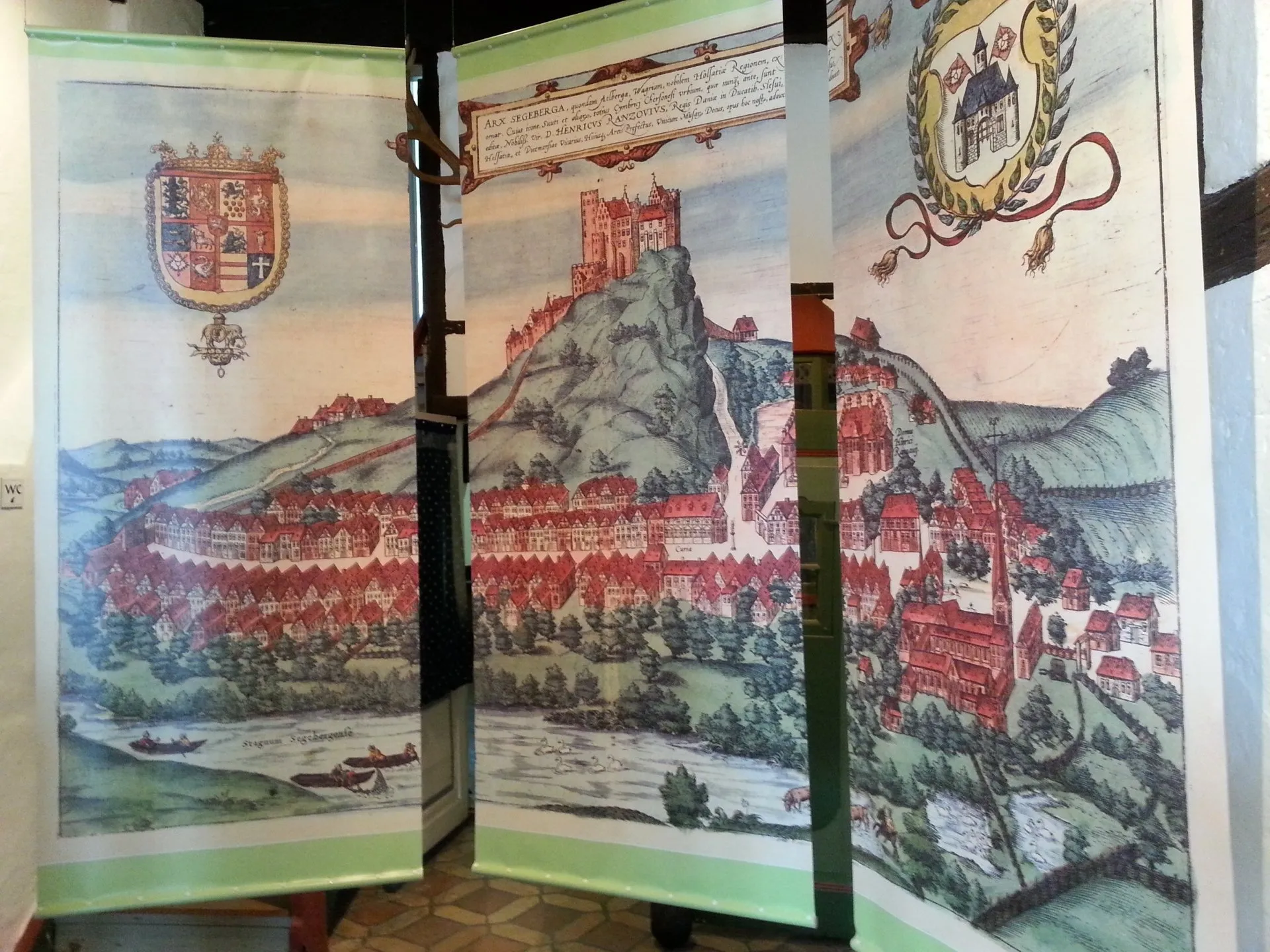 Das Kieler Schloss von früher und heute, ein Diorama mit der alten Universität von Kiel.