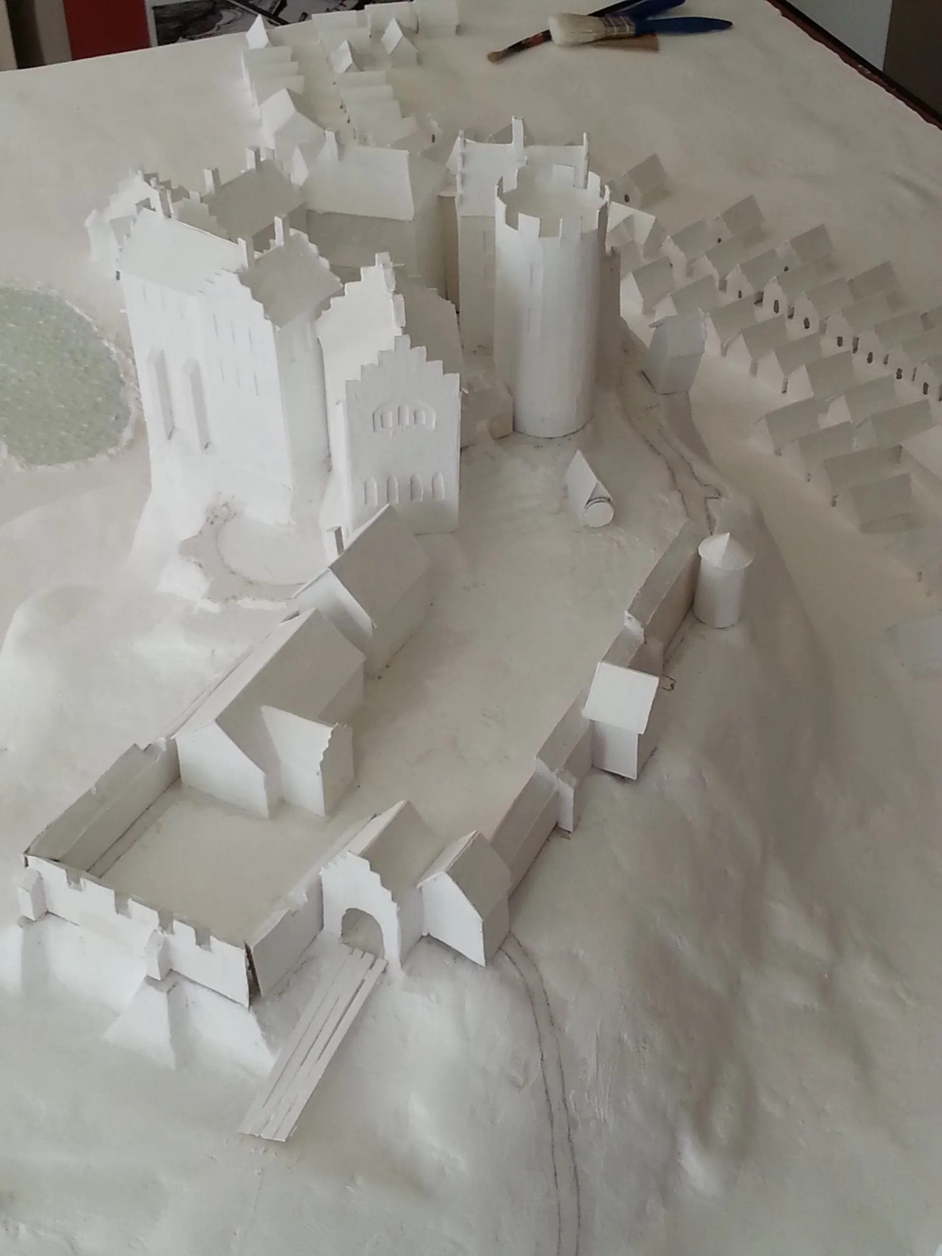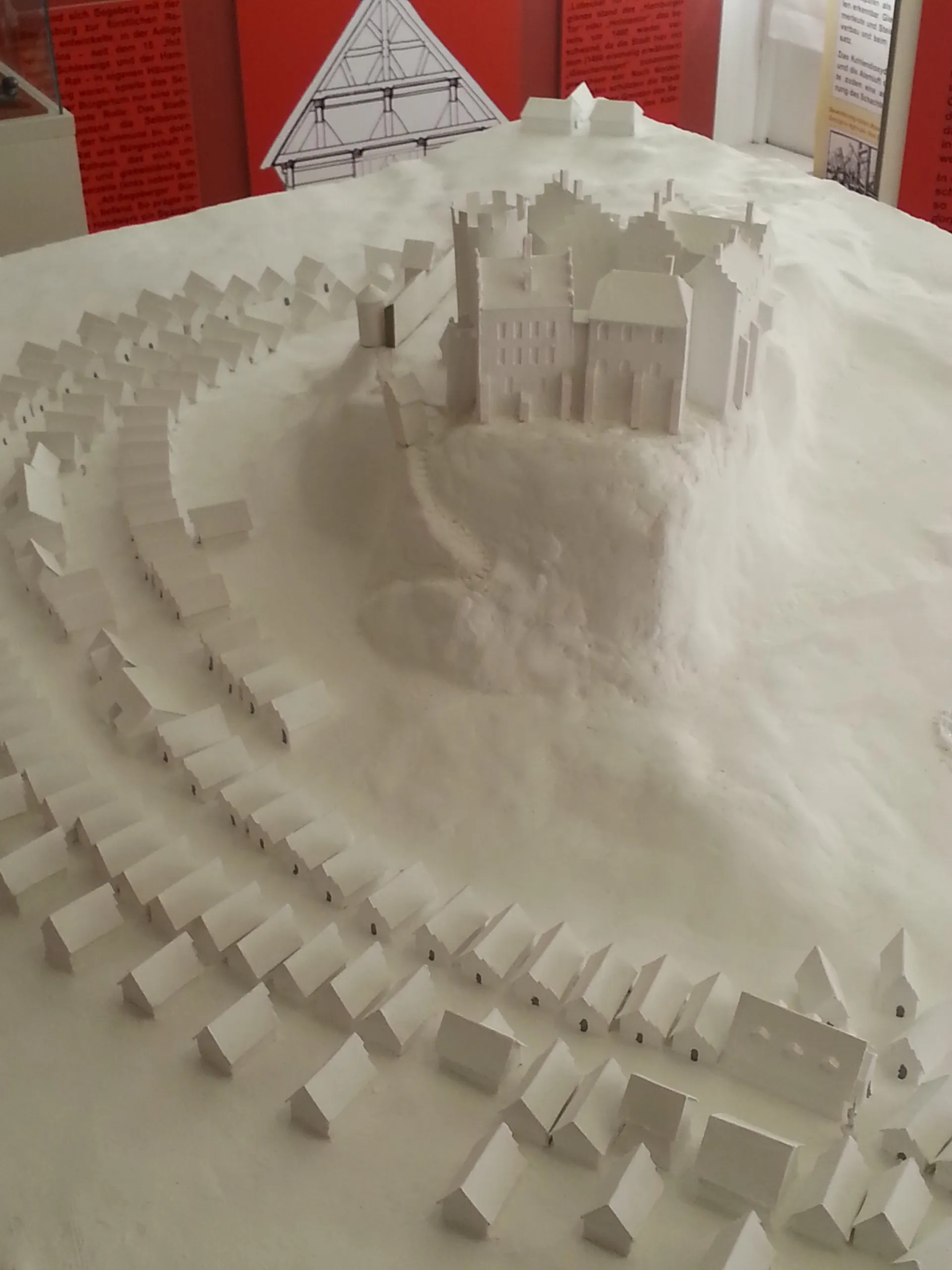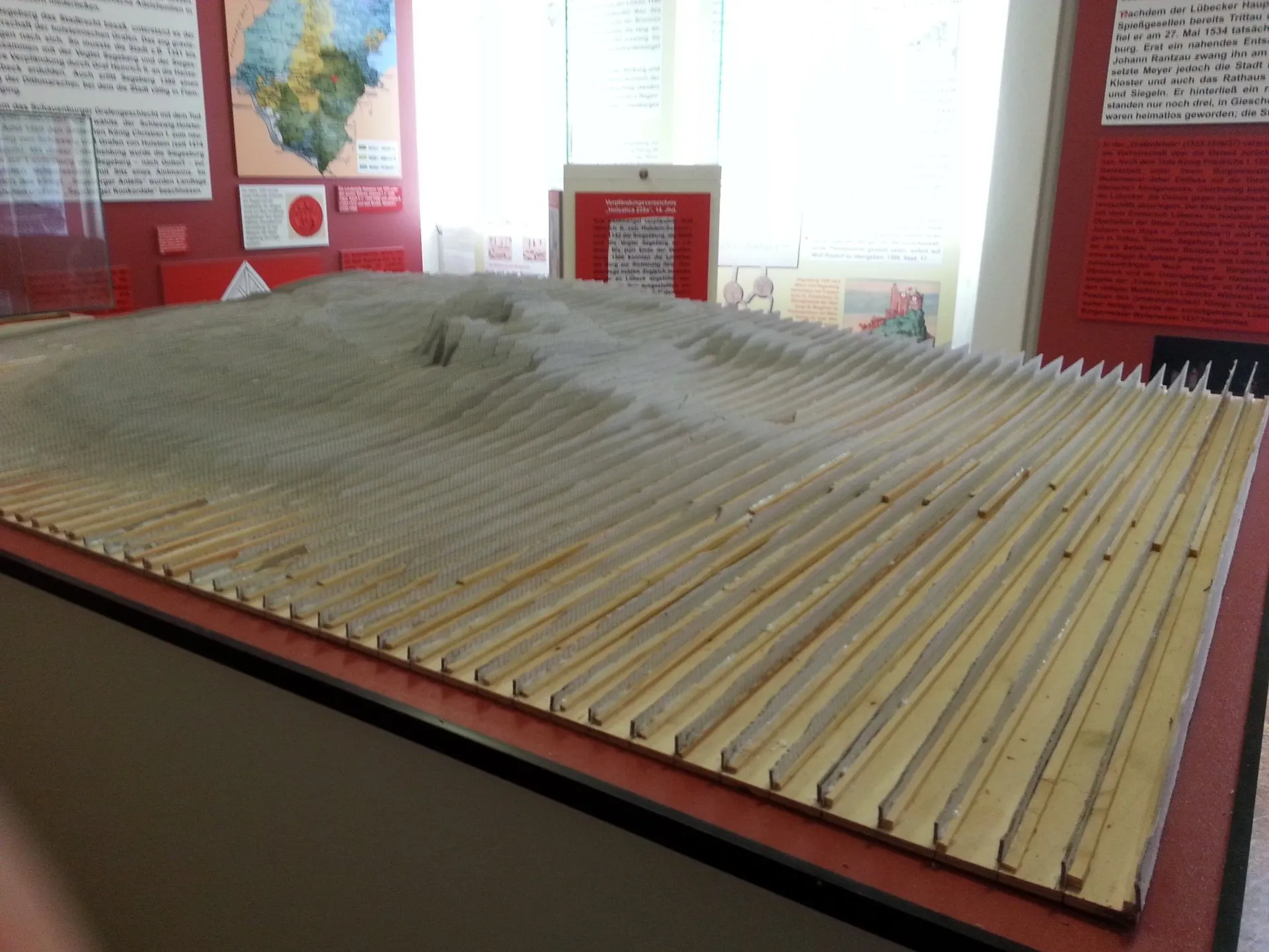 Das Diorama aus Bad Segeberg mit dem Kalkberg und der Siegesburg nach Fotos erstellt, aus Karton und Gips gebaut.