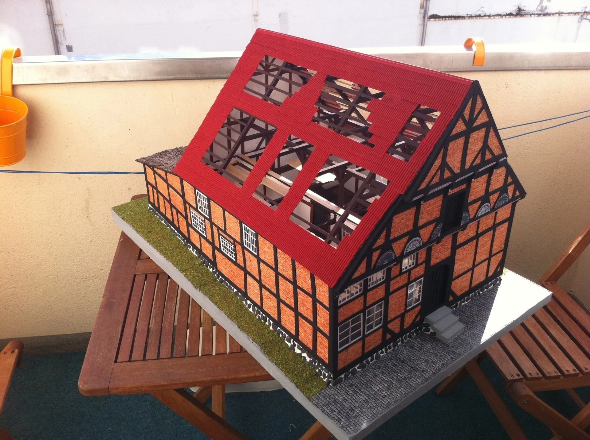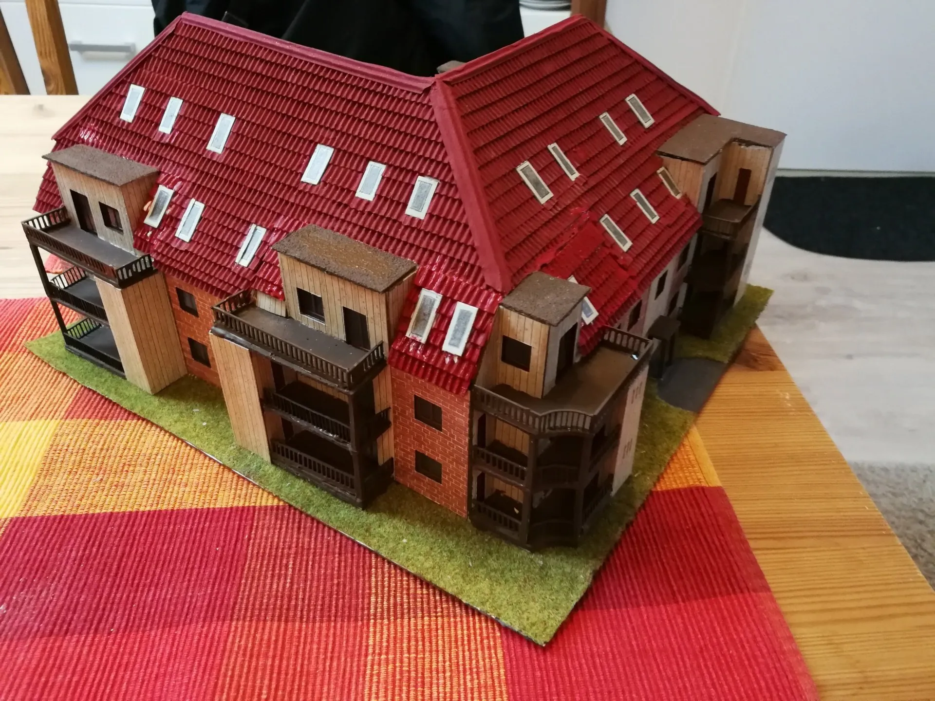 Die Häusermodelle werden von Hand konstruiert und gebaut, im inneren sind die Gebäude mit Holzleisten verstärkt zur Stabilität. Die anderen Materialen sind Karton, Fotokarton, Mauerplatten und vieles mehr. Von der Konstruktion bis zur Fertigstellung vergeht einige Zeit je nach Aufwand.