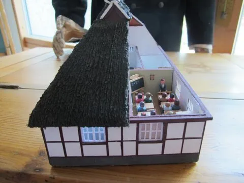 Verschiedene Reetdachhäuser erstellt, wie die Dorfschule nach alten Bildern und Unterlagen, teilweise mit Innenausbau