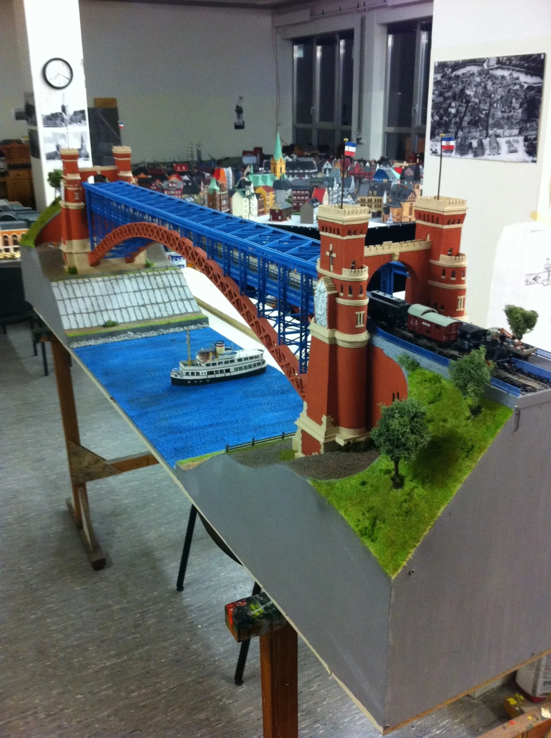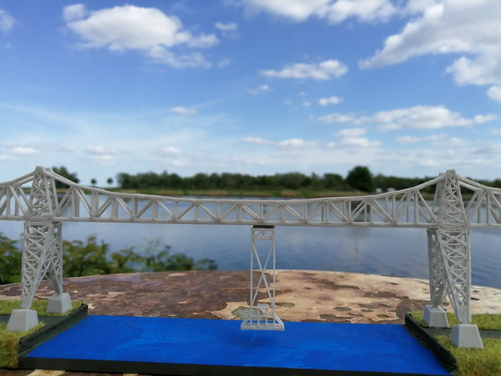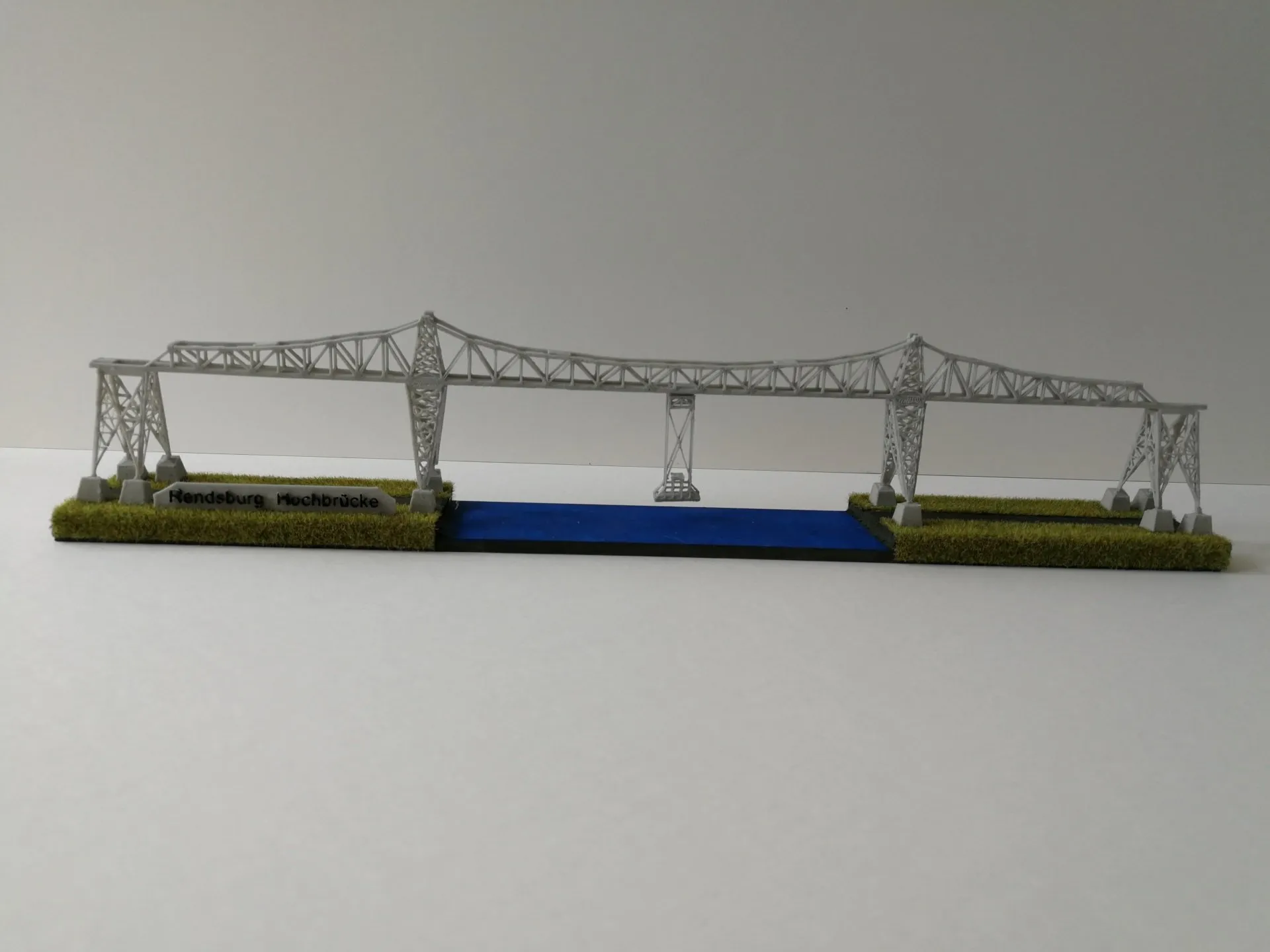 Rendsburger Hochbrücke über den NOK erstellt mit dem 3D-Drucker aus Kunststoff und Holz im Maßstab 1:800