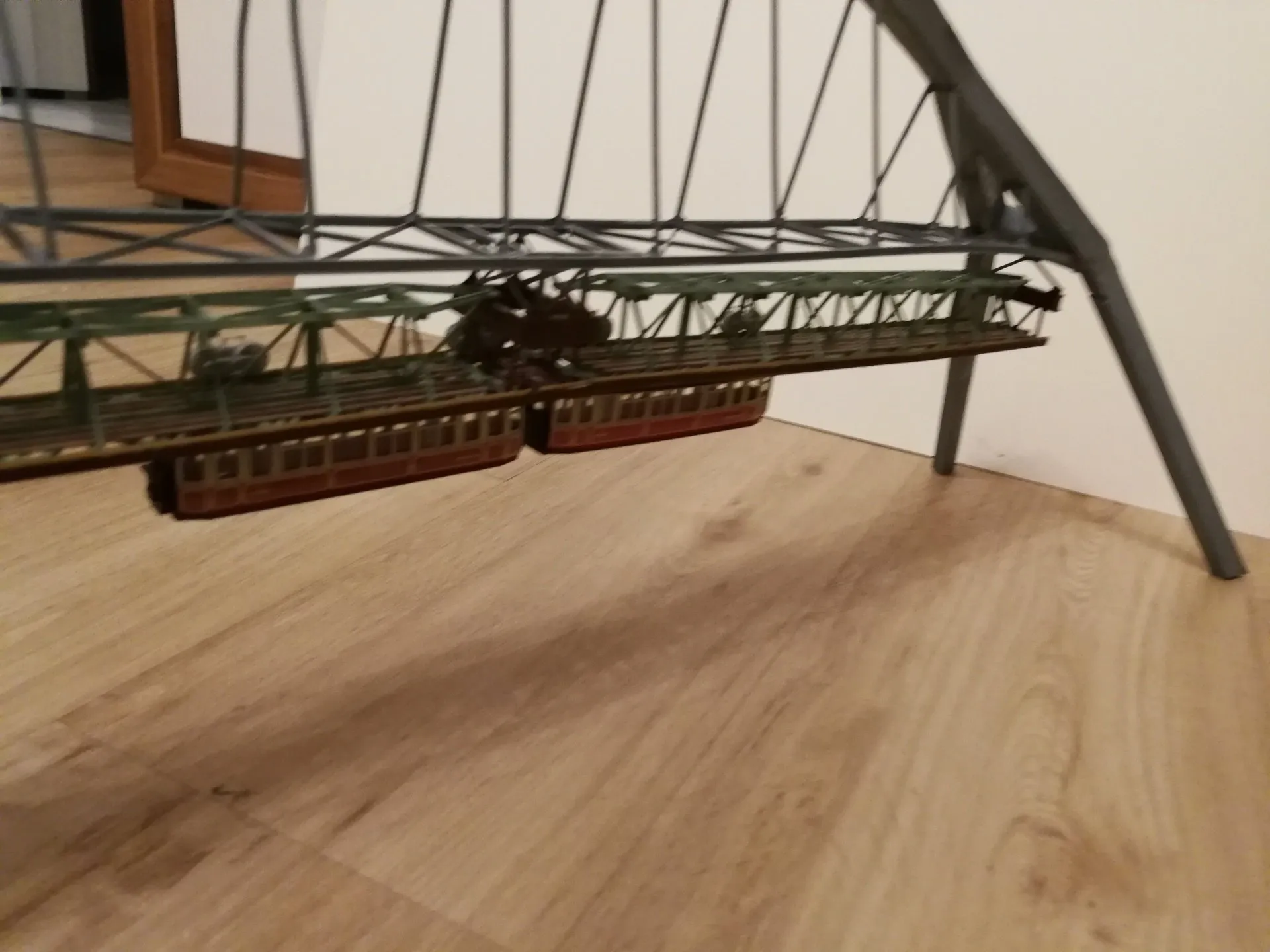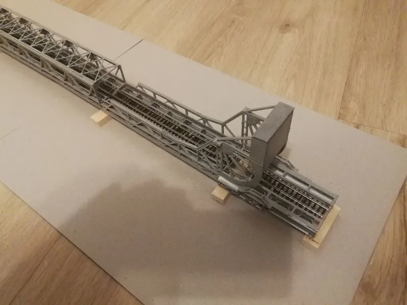 Die Konstruktion der 42 Meter hohen Brücke ohne die Schwebebfähre.Die Brücke in HO ist beim MEC in Rendsburg zu sehen und nun wieder komplett mit der Schwebefähre.Klappbrücke Lindaunis an der Schlei in Spur N, es ist der erste Entwurf. Die Brücke kann in HO angefertigt werden und wird noch erweitert. Auf Wunsch eines Kunden aus Dänemark angefertigt. Die Klappbrücke mit Haus und Brücke in Spur N hat eine Länge von ca. 78cm, breite und höhe von 5 cm.